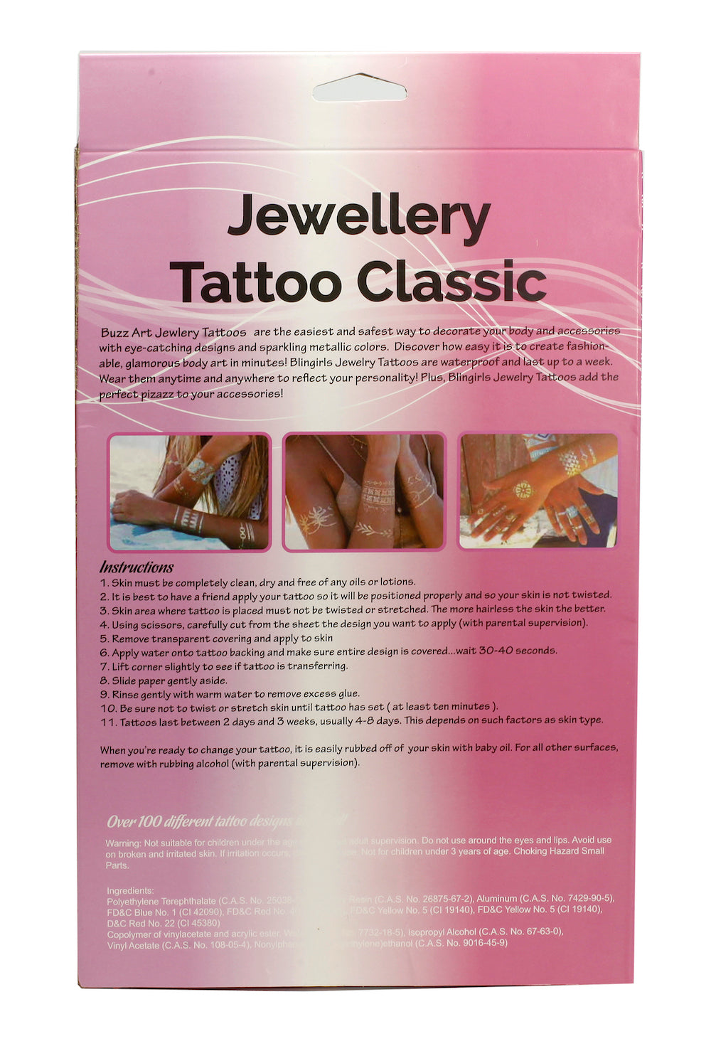 Versatile and trendy, Jewellery Tattoos – Classic can be worn as anklets, chokers, rings, or statement body art. Customize lengths to match your mood or pair them with your favourite jewellery pieces for a chic, layered effect. When you’re ready for a change, simply remove them with baby oil—quick, simple, and mess-free. Perfect for adding glamour without commitment, these metallic designs are your go-to accessory for standout style. Elevate your look with Jewellery Tattoos – Classic today at Buzz Retail.