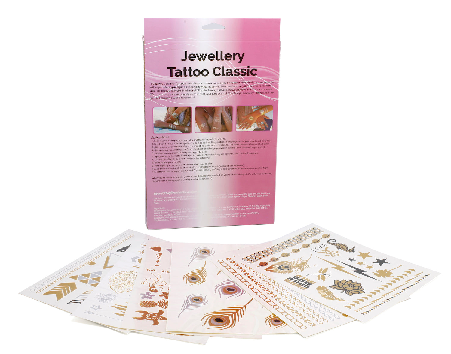 Jewellery Tattoos – Classic let you shine with style wherever you go. Inspired by elegant Moroccan and geometric patterns, these metallic tattoos are the perfect body accessory for festivals, parties, or everyday looks. Waterproof and long-lasting, they’re designed to stay vibrant for up to three weeks on clean skin, so you can enjoy their brilliance without constant reapplication. Lightweight and easy to apply, these tattoos give you the freedom to create unique layered styles that reflect your personality.