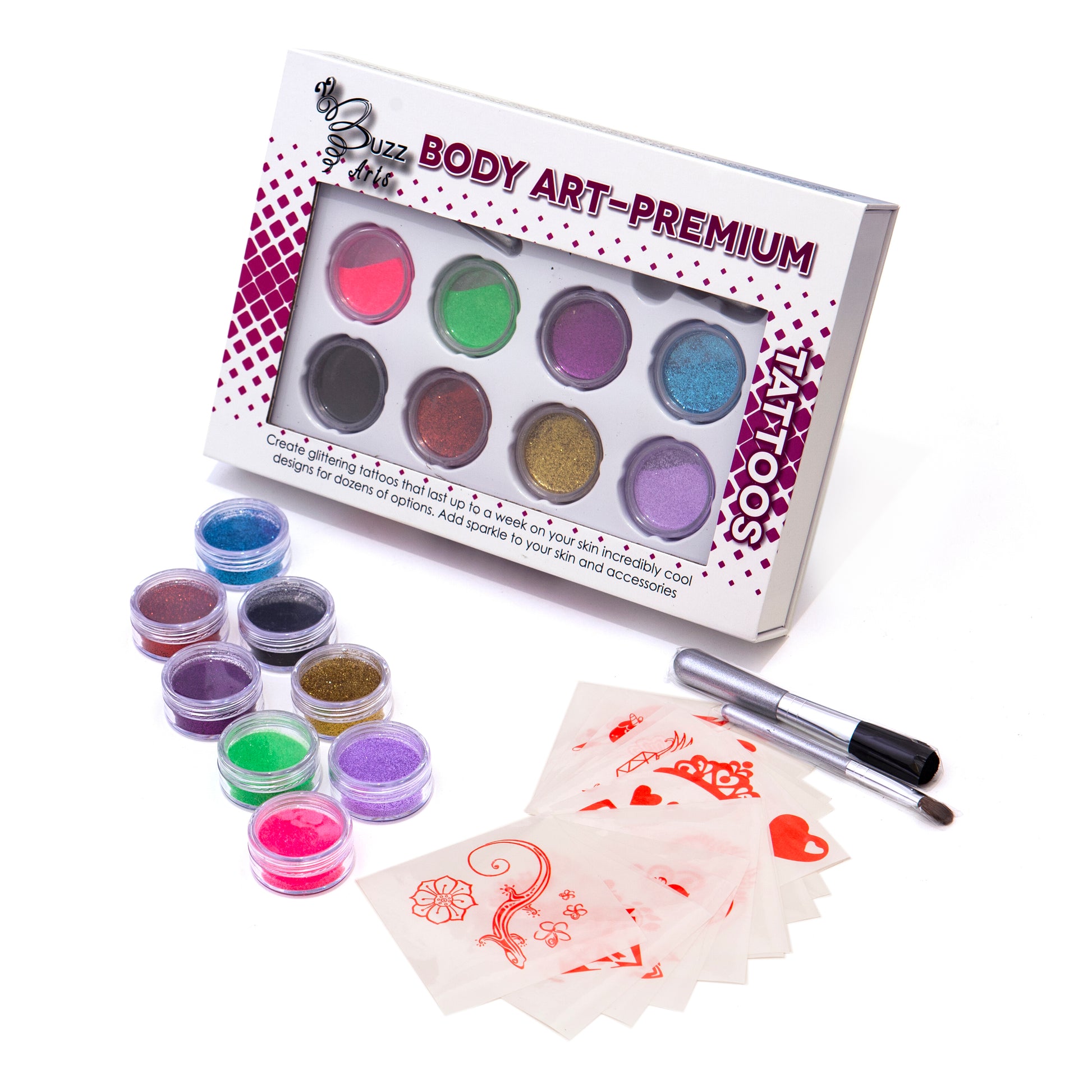 Made with high-quality, gentle, and kid-safe materials, Body Art Premium Tattoos are designed to last up to a week while still being easy to remove when it’s time for a new look. Whether for parties, playdates, or simply at home, these glitter tattoos make every day feel special. With so many designs and colours, children can create unique combinations again and again. Bring safe sparkle and creative fun to your child’s world—shop Body Art Premium Tattoos today at Buzz Retail.
